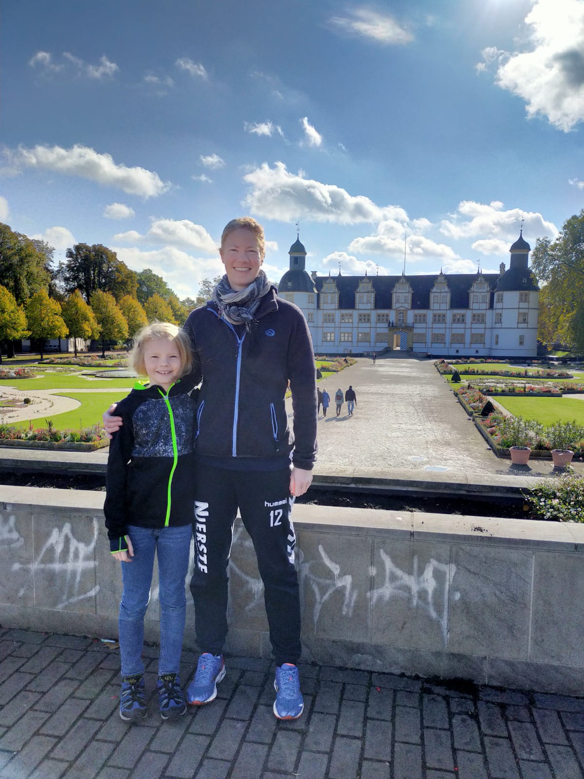 Am Sonntagnachmittag trat die F3-Damen mit guter Laune gegen die Reserve der Schloß Neuhäuserinnen an. Nach eine kurzen Besichtigung des sehenswerten Schloßparks für einzelne Teammitglieder, die erstaunlicherweise überpünktlich angereist waren, ging es dann mit fast vollem Kader in die Halle. Unterstützung gab es diesmal durch Noura und Lisa aus der A-Jugend und auch Klara war wieder mit dabei. Auf der Bank wurden wir betreut von Sietje und Maja. In der ersten Viertelstunde taten wir uns eher schwer, die Bälle der Neuhäuserinnen schlugen ungehindert und platziert bei Ina im Torgehäuse ein. Beim 7:3-Rückstand in der 12.Spielminute hätte man tatsächlich ins Zweifeln kommen können. Aber wir schüttelten die etwas schwache Phase ab und meldeten uns durch zwei Treffer in Folge von Klara über Rechtsaußen und Lisa von der rechten Rückraumposition wieder ins Geschehen zurück, 7:5. Die Gastgeberinnen legten zwar immer noch vor, aber wir ließen uns nicht abhängen und konnten zwischenzeitlich bis zum Gleichstand aufholen. Mit 14:13-Rückstand ging es in die Pause. Die Torfolge nach der Halbzeit wurde durch einen richtig schönen Treffer von Silvia eingeleitet. Herausragend war aber unsere immer stärker werdende Abwehr, die mit Inas tollen Paraden im Tor von der 39. Minute (17:17) an gar keine Treffer der Gastgeberinnen mehr zuließ. Mit diesem Rückhalt konnten wir – trotz einiger Fehlwürfe – das Spiel zu unseren Gunsten drehen. Petra steuerte vom Kreis die zwei entscheidenen Treffer zum 17:21 und 17:22 (56.Minute) bei. Danach trudelte die Partie locker aus und wir konnten über zwei Punkte jubeln.