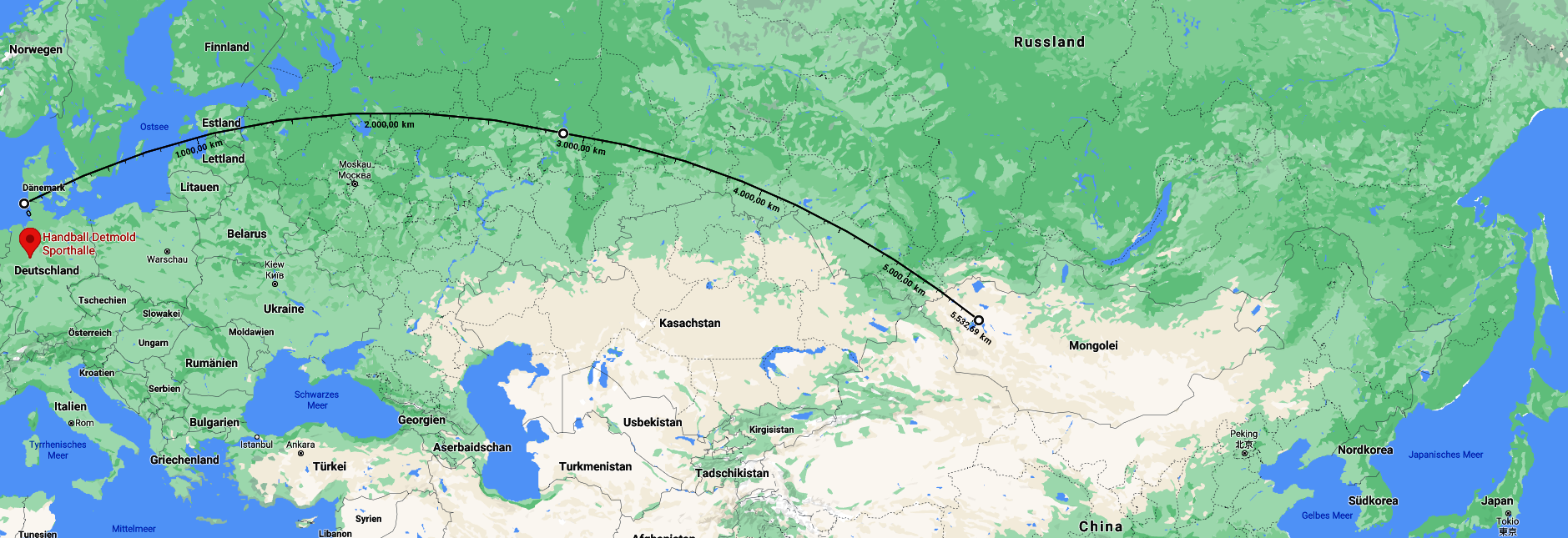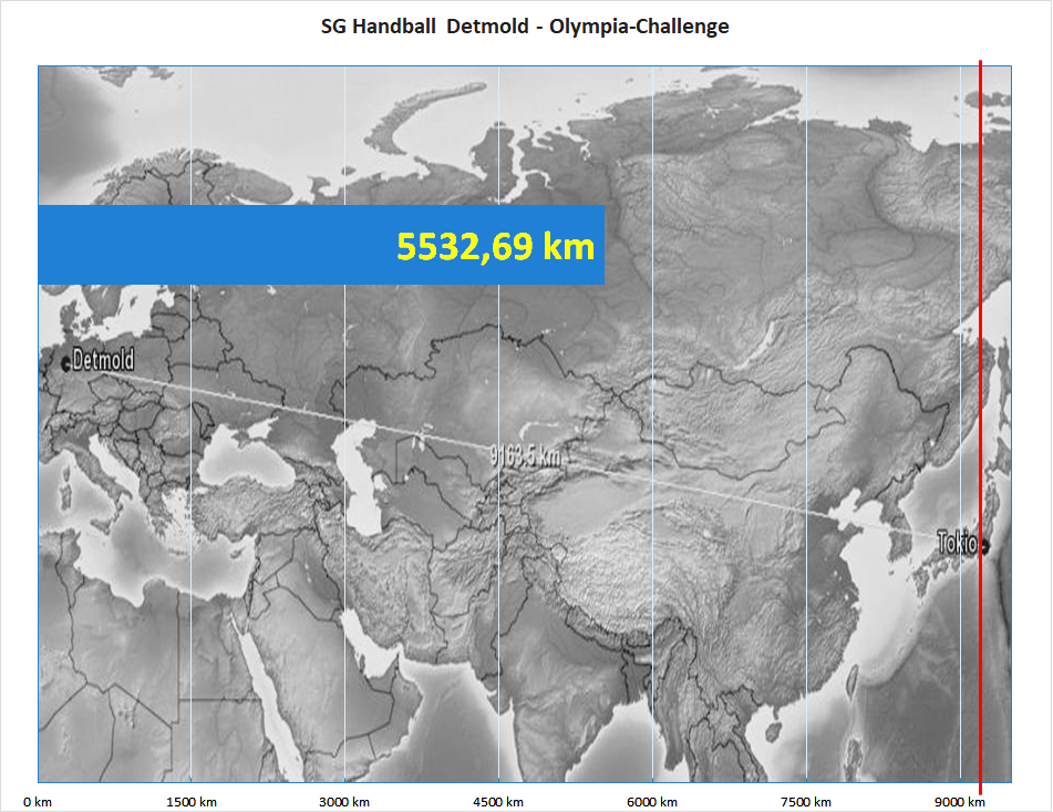Die Handballerinnen und Handballer der SG Handball Detmold haben mit der letzten Wochenmeldung der Teams eine Strecke von 5532, 69 km zurück gelegt.